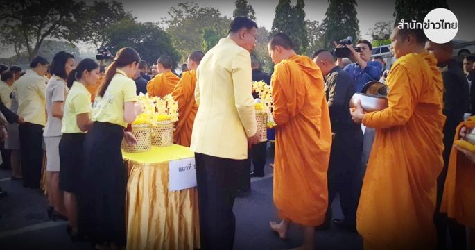 ประธานสภานิติบัญญัติแห่งชาติ นำข้าราชการ ทำบุญตักบาตร เนื่องในวันคล้ายวันเฉลิมพระชนมพรรษา ในหลวงร.9 น้อมรำลึกในพระมหากรุณาธิคุณ