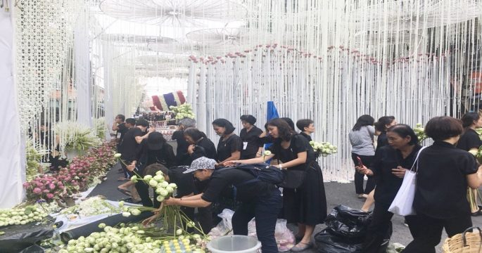 ชาวปากคลองตลาดและจิตอาสา เร่งเนรมิตถนนจักรเพชร ให้กลายเป็นดอกไม้แห่งสรวงสวรรค์ “ดอกไม้ของพ่อ” คาดเสร็จสมบูรณ์ช่วงค่ำวันนี้