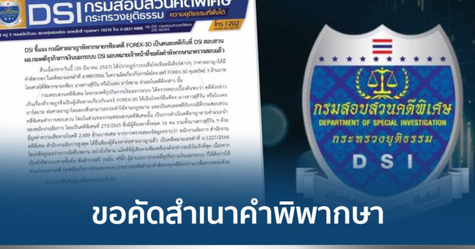 DSI ชี้แจงกรณีศาลอาญาพิพากษายกฟ้องคดี FOREX-3D