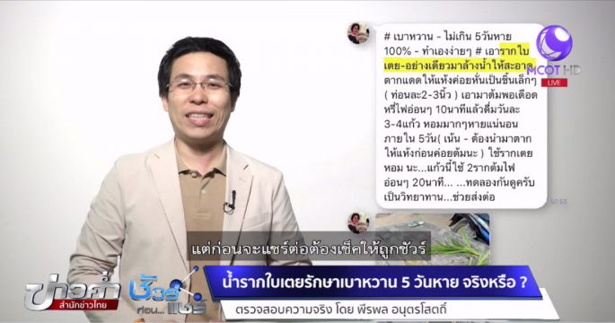 บนสังคมออนไลน์แชร์สูตรรักษาเบาหวาน 5 วันหาย 100% ทำเองง่ายๆ แค่เอารากใบเตยมาล้างน้ำ ตากแดด แล้วต้ม ดื่มทุกวัน เรื่องนี้จริงหรือไม่ ? ติดตามจากศูนย์ชัวร์ก่อนแชร์