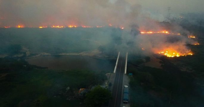ทางการท้องถิ่นบราซิลแจ้งว่า กำลังเกิดไฟป่าขนาดใหญ่ทั่วปันตานาล พื้นที่ชุ่มน้ำเขตร้อนใหญ่ที่สุดในโลกทางตอนใต้ของบราซิล เผาพื้นที่ไปแล้วกว่า 312,500 ไร่