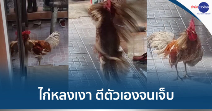 ไก่หลงเงา ตีตัวเองจนเจ็บ