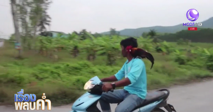หนุ่มลูกจ้าง อบต.ซื้อไก่ป่ามาเลี้ยงจนเชื่อง จับขึ้นเกาะบ่าขับขี่รถจักรยานยนต์พาตระเวนเที่ยวรอบหมู่บ้าน คนพบเห็นต่างชื่นชอบ