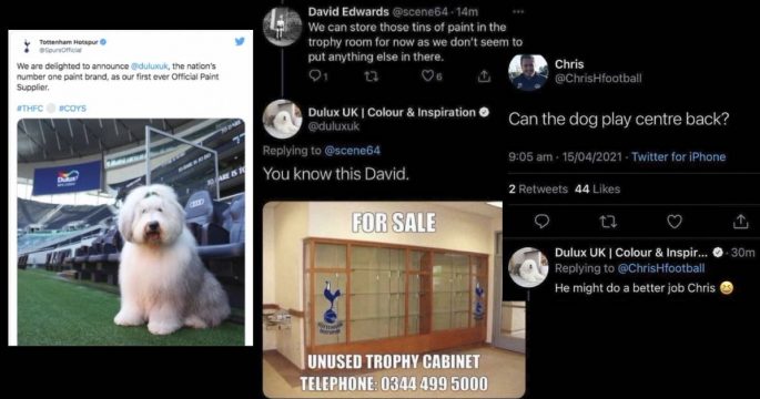 ‘ไก่เดือยทอง’ ท็อตแน่ม ฮ็อตสเปอร์ส สุดเจ็บใจ ถูกสีดูลักซ์ แบรนด์สีชื่อดังที่เพิ่งมาเป็นสปอนเซอร์ใหม่ให้สโมสร ทวิตแซวผลงานไร้แชมป์ของทีม ก่อนออกมาขอโทษและลบทวีตทิ้งภายหลัง