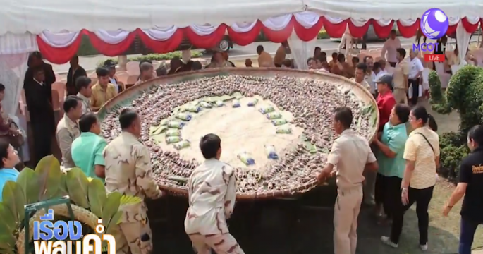 เจ้าของฟาร์มนกกระทาดังอ่างทองนำนกกระทากว่า 2,000 ตัวพร้อมไข่ บวงสรวงอนุสาวรีย์วีรชนแขวงเมืองวิเศษไชยชาญ ก่อนแจกให้ผู้ร่วมงานเป็นสิริมงคล