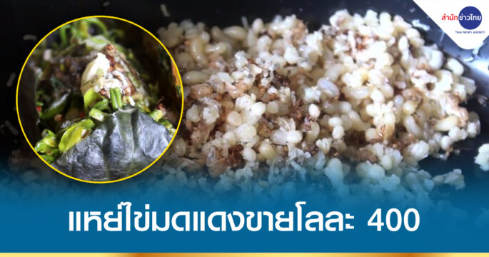 ชาวบ้านจระเข้หิน อ.ครบุรี จ.นครราชสีมา แหย่ไข่มดแดงขาย กิโลกรัมละ 400 บาท แถมนำมาทำเมนูเด็ด “ห่อหมกไข่มดแดงผักหวาน” เมนูพื้นบ้านหากินยาก