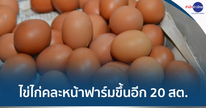 ไข่ไก่คละหน้าฟาร์มปรับขึ้นเป็นครั้งที่ 2 ในเดือนมี.ค. โดยปรับขึ้นฟองละ 20 สตางค์หรือ 6 บาทต่อแผง มีผลตั้งแต่วันที่ 23 มี.ค.