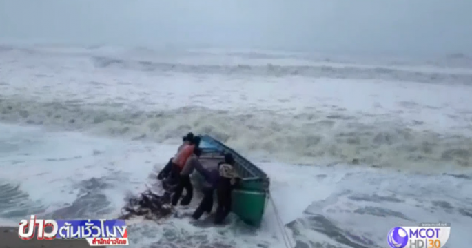 ชาวประมงในรัฐคุชราตทางตะวันตกของอินเดียเร่งนำเรือของพวกเขาเข้าฝั่งขณะคลื่นลมแรงมากและฝนตกหนักทั่วพื้นที่วันพฤหัสบดี