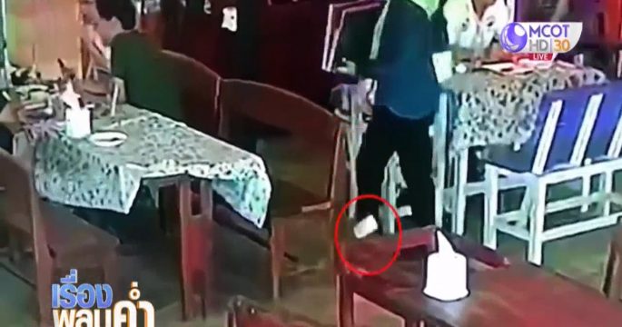 ภาพจากกล้องวงจรปิด จับภาพแม่ค้าขายสลากกินแบ่งรัฐบาล ทำสลากหล่นในร้านอาหารแห่งหนึ่ง ขณะที่เจ้าของร้านเก็บ เพื่อประกาศตามหาเจ้าของ บังเอิญถูกรางวัลเลขท้าย 2 ตัว