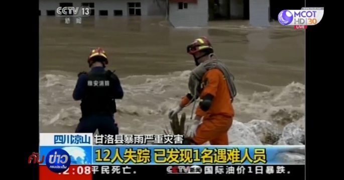 ไต้ฝุ่นวิภาพัดถล่มพื้นที่ทางภาคใต้ของจีน เกิดน้ำท่วมและดินถล่มในมณฑลเสฉวน มีผู้เสียชีวิตแล้ว 1 คน สูญหายอีก 11 คน ชาวบ้านและคนงานราว 2,200 คน ต้องอพยพออกจากพื้นที่