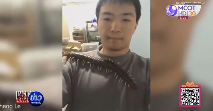นักศึกษาหนุ่มชาวไต้หวัน เลี้ยงตะขาบยักษ์ขาเหลืองเปรู ในหอพัก บอกรักตะขาบตัวนี้มาก แต่ไม่แนะนำให้คนซื้อมาเลี้ยงบ้าง เพราะเป็นสัตว์อันตราย