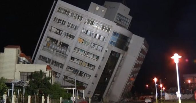 หน่วยกู้ภัยไต้หวันบุกฝ่าพื้นที่ประสบภัยที่ยังคงมีอาฟเตอร์ช็อกรุนแรง เพื่อค้นหาผู้รอดชีวิตภายในอพาทเมนต์ที่เริ่มเอียงและบางส่วนถล่มลงแล้ว