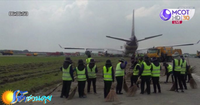 การบินไทยกู้เครื่องบินที่ไถลออกนอกรันเวย์และจมโคลนข้างรันเวย์สนามบินสุวรรณภูมิเมื่อคืนที่ผ่านมาได้แล้ว โดยตลอดทั้งวันทำให้มีเครื่องบินล่าช้าเกือบ 200 เที่ยว