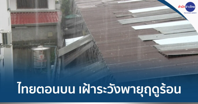 กรมอุตุฯ เตือนไทยตอนบน เฝ้าระวังพายุฤดูร้อน ฝนถล่ม ลมกระโชกแรง ลูกเห็บตก ส่วนภาคใต้มีฝนตกหนักบางแห่ง