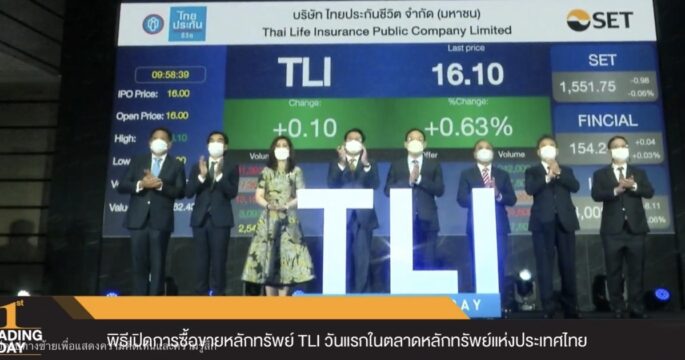 กรุงเทพฯ 25 ก.ค.- TLI เปิดเทรดวันแรก ที่ 16.10 บาท เพิ่มขึ้น 0.10 บาท หรือ 0.63 % จากราคาไอพีโอ 16 บาทหวังนำเงินลงทุนด้านเทคโนโลยี เพิ่มประสิทธิภาพของช่องทางการขายผ่าน และเสริมสร้างเงินกองทุนให้มีความเข้มแข็งมากขึ้น