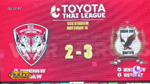 เนบิญ่า บายรัม ทำคนเดียว 2 ประตู ช่วยให้อุบลยูเอ็มที ยูไนเต็ด บุกมาเฉือนชนะ เอสซีจี เมืองทอง ยูไนเต็ด 3-2 ในศึกไทยลีก ทำให้กิเลนผยอง แพ้ 3 นัดติดต่อกัน