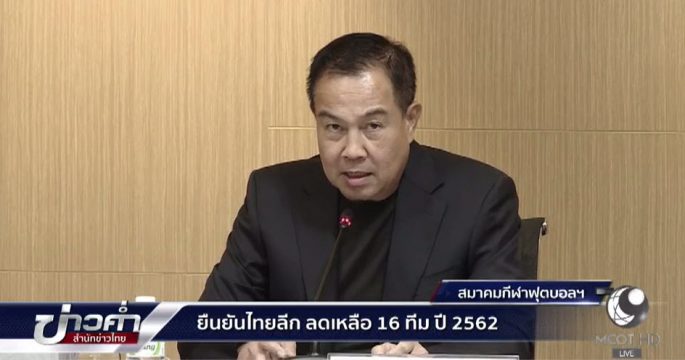 นายกสมาคมกีฬาฟุตบอลฯ ยืนยันว่าจะลดจำนวนทีมในไทยลีกให้เหลือเพียง 16 ทีม ในปี 2562 หรืออีก 2 ปีข้างหน้า เพื่อความเหมาะสม
