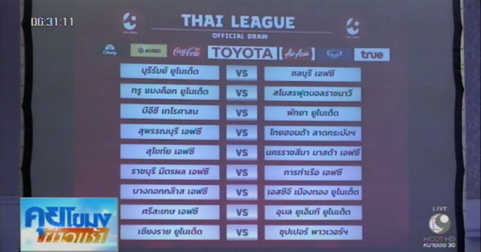 จับสลากประกบคู่ฟุตบอลไทยลีก ฤดูกาล 2017 สัปดาห์แรกมีคู่บิ๊กแมตซ์ 2 คู่ เอสซีจี เมืองทอง ยูไนเต็ด แชมป์เก่า พบ บางกอกกล๊าส ส่วน บุรีรัมย์ พบ ชลบุรี เอฟซี