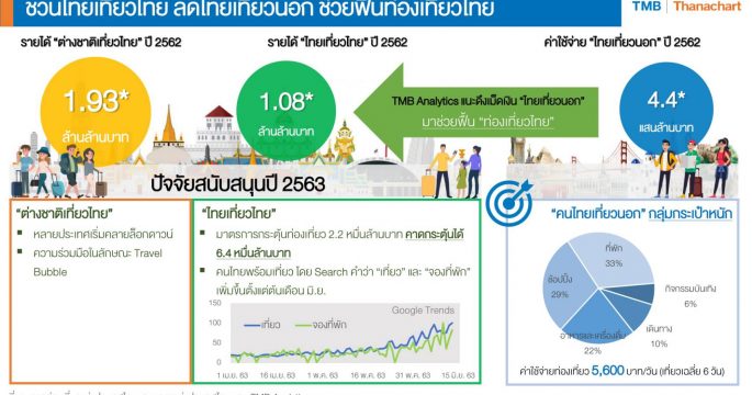 ศูนย์วิเคราะห์เศรษฐกิจ ทีเอ็มบี หรือ TMB Analytics คาด “ไทยเที่ยวไทย” มีแนวโน้มดีขึ้นช่วงครึ่งปีหลังหลังการคลายล็อกดาวน์ในประเทศและได้มีแพคเก็จกระตุ้นการท่องเที่ยวของภาครัฐ