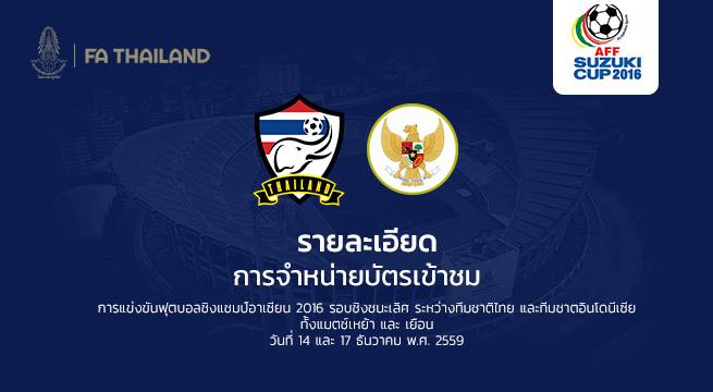 ฟุตบอลชิงแชมป์แห่งชาติ 2016 รอบชิงชนะเลิศ ระหว่าง ไทย กับ อินโดนีเซีย จะแข่งขันแบบเหย้า-เยือน ซึ่งนัดที่ 2 จะแข่งขันที่สนามราชมังคลากีฬาสถาน 17 ธ.ค.59