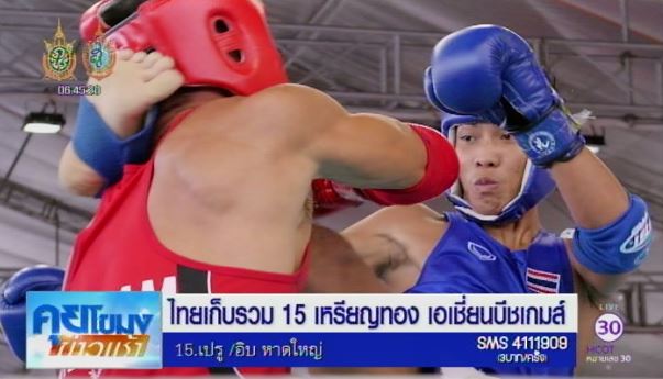 สามนักมวยไทยคว้าเหรียญทองให้กับทัพนักกีฬาเอเชียนบีชเกมส์ ที่เมืองดานัง ประเทศเวียดนาม ทำให้ขณะนี้ไทยขึ้นไปนำเป็นอันดับ 1 บนตารางเหรียญ