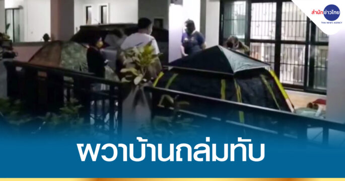 เจ้าของบ้าน 6 หลัง จากเหตุกำแพงหมู่บ้านพังถล่ม ผวาบ้านทรุดตัวลงมาทับ ต้องนำเต็นท์มากางนอนหน้าบ้าน ตามคำแนะนำของวิศวกรรมสถานฯ