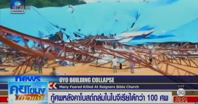 สื่อทางการไนจีเรียรายงานว่า เหตุหลังคาโบสถ์ถล่มทางใต้ของประเทศเมื่อวันศุกร์อาจมีผู้เสียชีวิตมากถึง 200 คน