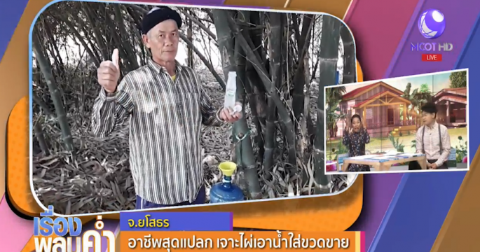 อาชีพใหม่ของเกษตรกรผู้ปลูกไผ่กิมซุงที่ จ.ยโสธร หันมาเจาะเอาน้ำบริสุทธิ์ในต้นไผ่บรรจุขวดขาย 15-20 บาท สร้างรายได้กลุ่มคนรักสุขภาพ