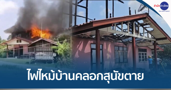 ไฟไหม้บ้านวอดทั้งหลังในหมู่บ้านจะแกโกน ต.ท่าสว่าง อ.เมืองสุรินทร์ สุนัขถูกไฟคลอกตาย 1 ตัว ขณะเข้าไปช่วยลูกสาวเจ้าของบ้านที่นอนหลับอยู่