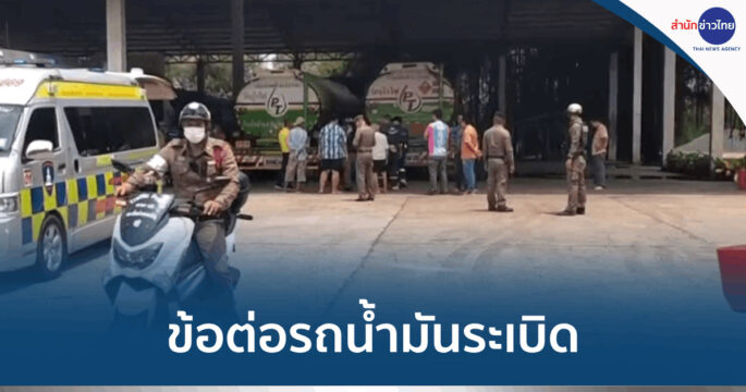 ข้อต่อรถน้ำมันระเบิด ขณะจอดเติมน้ำมันลงในถังพัก คนขับกำลังเชื่อมต่อท่อน้ำมัน ถูกไฟคลอก เจ็บสาหัส อยู่ระหว่างตรวจสอบสาเหตุ