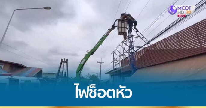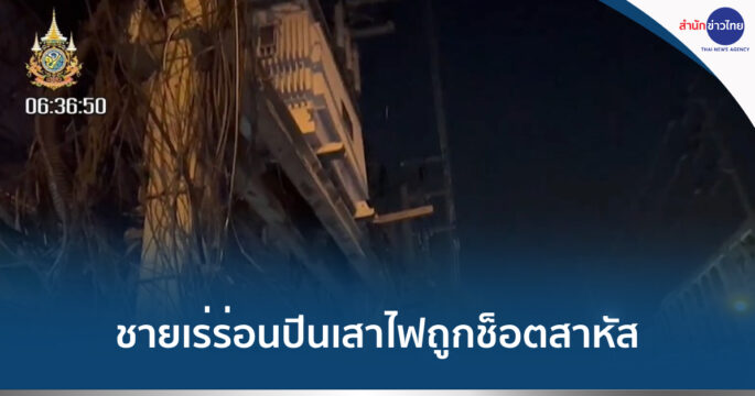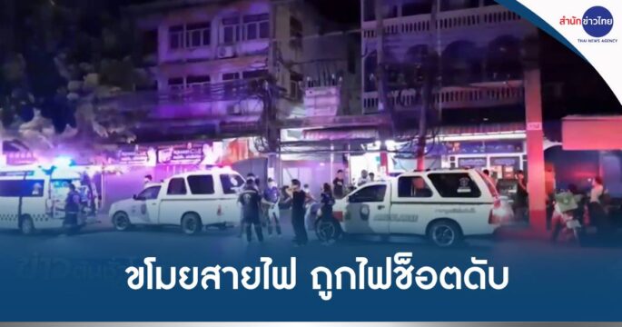 ช่างทาสีถูกไฟช็อต ไฟลุกไหม้ท่วมตัวบนระเบียงตึก 3 ชั้น อาการสาหัส และยังทำให้ไฟลุกไหม้สายสื่อสารที่อยู่บนเสาไฟฟ้าด้วย