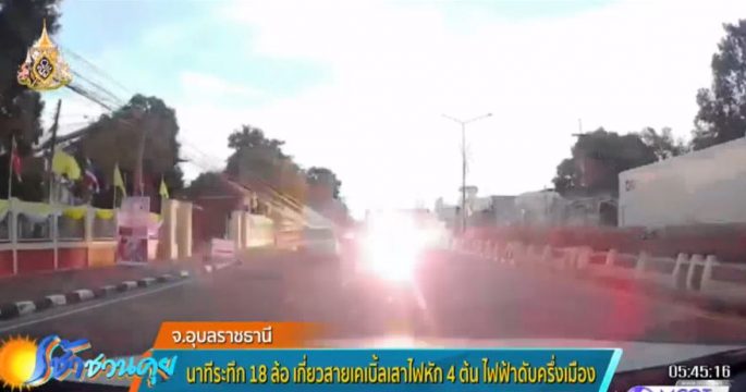 โลกออนไลน์แชร์คลิประทึก นาทีรถ 18 ล้อ เกี่ยวสายเคเบิลสื่อสารบริเวณด้านหน้ามหาวิทยาลัยราชภัฏอุบลราชธานี ช่วงเย็นวานนี้ จนทำให้ไฟฟ้าแรงสูงล้ม เกิดประกายไฟระเบิดหลายครั้ง ไฟฟ้าดับเป็นบริเวณกว้าง นานกว่า 3 ชั่วโมง