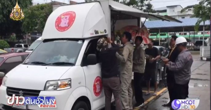 เจ้าหน้าที่การไฟฟ้านครหลวงสาขาบางใหญ่ ตรวจสอบรถขายก๋วยเตี๋ยวฟู้ดทรัค หลัง น.ส.นิพาดา พลอาษา ถูกไฟดูดขณะนั่งทานก๋วยเตี๋ยว เสียชีวิต
