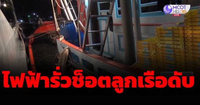 เรือประมงไฟฟ้ารั่ว ช็อตลูกเรือเสียชีวิตคาที่ 2 ศพ ขณะช่วยกันสาวอวนอยู่ท้ายเรือ เพื่อนหลายคนจะเขาไปช่วย ก็ถูกไฟดูด ต้องตะโกนให้นายท้ายเรือปิดเครื่องปั่นไฟ คาดกระแสไฟฟ้าน่าจะรั่วมาจากไดชาร์จเครื่องปั่นไฟ