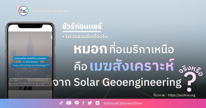 ผู้เชี่ยวชาญวิเคราะห์ว่า สี ความหนาแน่น และตำแหน่งของหมอกที่ปกคลุมสหรัฐอเมริกา ไม่ใช่เมฆสังเคราะห์จาก Solar Geoengineering แต่เป็นควันจากไฟป่าแคนาดาอย่างชัดเจน