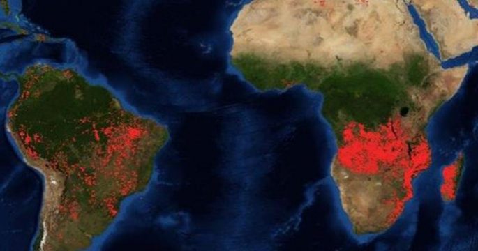 ภาพถ่ายขององค์การบริหารการบินและอวกาศแห่งชาติสหรัฐ หรือนาซาแสดงให้เห็นว่าแอฟริกากำลังมีไฟป่าเช่นกัน และมีขนาดใหญ่กว่าไฟป่าแอมะซอนถึง 5 เท่า