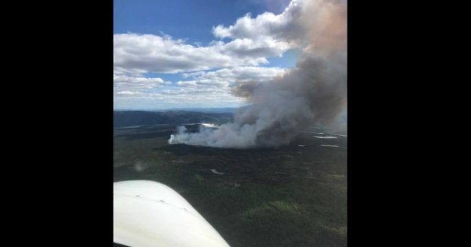 นักดับเพลิงช่วยกันสกัดไฟไหม้ป่าใกล้ชุมชนรัฐอะแลสกาห่างไปราว 418 กิโลเมตรทางตะวันตกของชายแดนสหรัฐ-แคนาดา