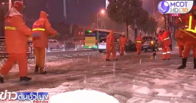 เกิดหิมะตกหนักในบริเวณภาคตะวันตกเฉียงใต้และภาคตะวันออกของจีน ทำให้เกิดไฟฟ้าดับเป็นบริเวณกว้างและการจราจรเป็นอัมพาต
