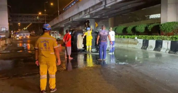 กระบะเมาแล้วขับ ชนพ่อแม่ลูก บาดเจ็บสาหัส