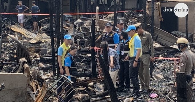 เจ้าหน้าที่เข้าตรวจสอบที่เกิดเหตุเพลิงไหม้ในชุมชนคลองขวาง ถนนพระราม 3 คาด 2 สัปดาห์ชัดเรื่องสาเหตุ
