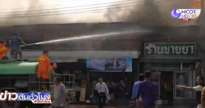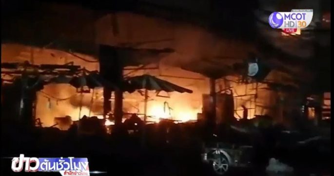 ไฟไหม้ตลาด หวิดลามปั๊ม คาดเกิดจากเตาอั้งโล่