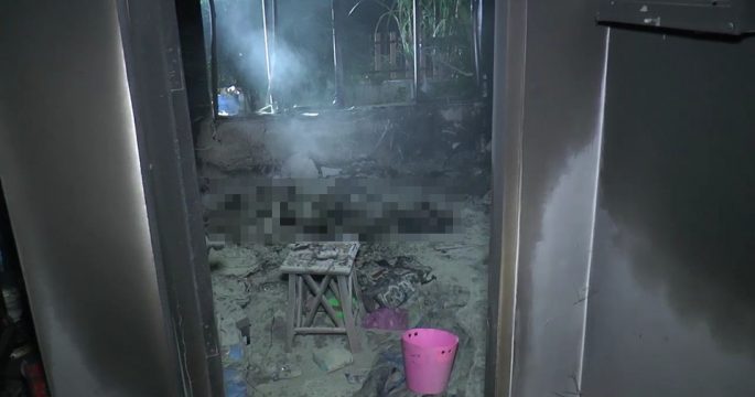 เพื่อนบ้านพังประตูรั้วช่วย 2 แม่ลูกเกือบถูกย่างสดจากเหตุไฟไหม้ ส่วนพ่อหนีไม่ทันถูกไฟคลอกดับคาห้องนอน ตำรวจเร่งตรวจสอบหาสาเหตุเพลิงไหม้ หลังพบธูปปักดินรอบบ้าน