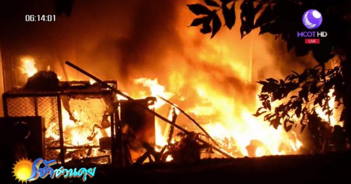 อากาศร้อนเจ้าของบ้านเปิดเครื่องปรับอากาศตลอดวัน จนทำให้เกิดไฟฟ้าลัดวงจรเกิดเพลิงไหม้บ้านได้รับความเสียหาย