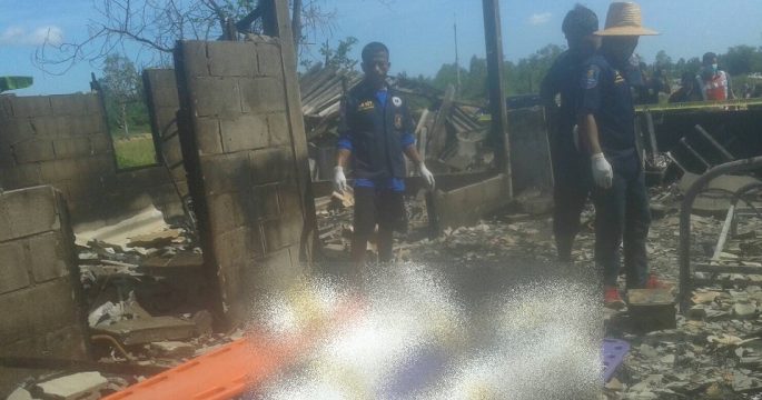 ชาวบ้านต้องช่วยกันใช้กระป๋องตักน้ำดับไฟ หลังเพลิงสงบพบยายวัย 69 ปี ที่อยู่ในบ้านเพียงลำพัง ถูกไฟคลอกดับคากองเพลิง