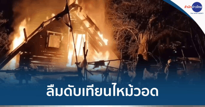 เจ้าของบ้านจุดเทียนให้แสงสว่างเพราะไม่มีไฟฟ้าใช้ แต่เผลอหลับ ลืมดับเทียน ทำไฟไหม้วอดทั้งหลัง พลเมืองดีลุยกองเพลิงช่วยออกมาอย่างปลอดภัย