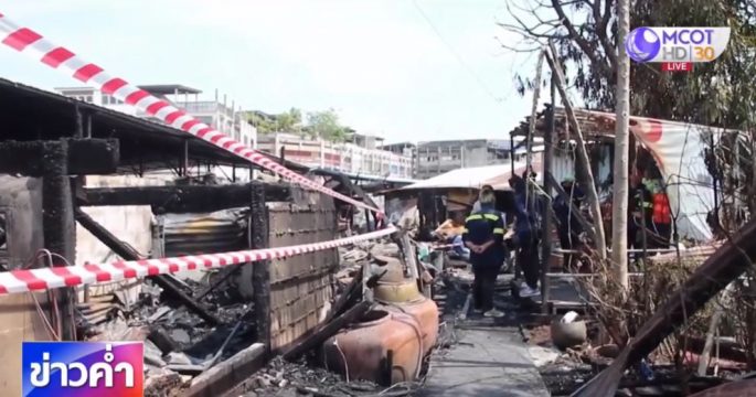 พฐ.ตรวจเหตุไฟไหม้ชุมชนคลองตาเค็ด บ้านวอด 5 หลัง รถเสียหาย 13 คัน
