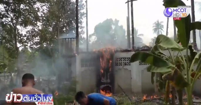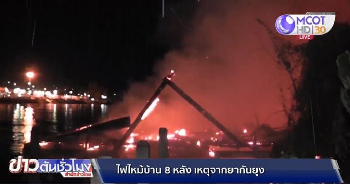 ไฟไหม้ชุมชนฝ่ายท่าริมแม่น้ำตาปี อ.พุนพิน จ.สุราษฎร์ธานี วอด 8 หลัง คาดบ้านต้นเพลิงจุดยากันยุงทิ้งไว้