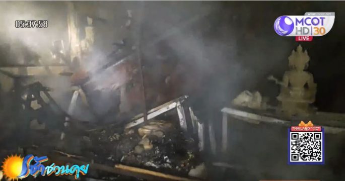 หญิงแทบช็อกรับแจ้งเหตุเพลิงไหม้บ้าน พบเสียหายเกือบทั้งหลัง โชคดีแม่และหลานหนีออกมาได้ปลอดภัย คาดไฟฟ้าลัดวงจร