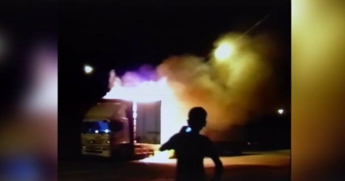 ไฟไหม้รถบรรทุกสินค้าบนถนนสายพังงา-ทับปุด