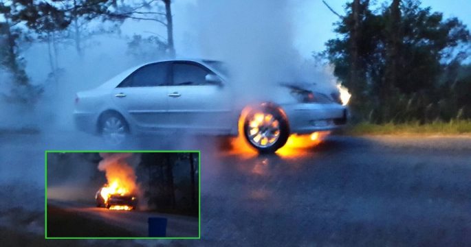 ชายวัย 38 เจอเหตุระทึกกลางถนนเมืองปราจีนบุรี ขณะขับรถกลับ กทม. เกิดไฟลุกไหม้ห้องเครื่องยนต์กะทันหันลามวอดทั่วคัน คาดระบบไฟลัดวงจร
